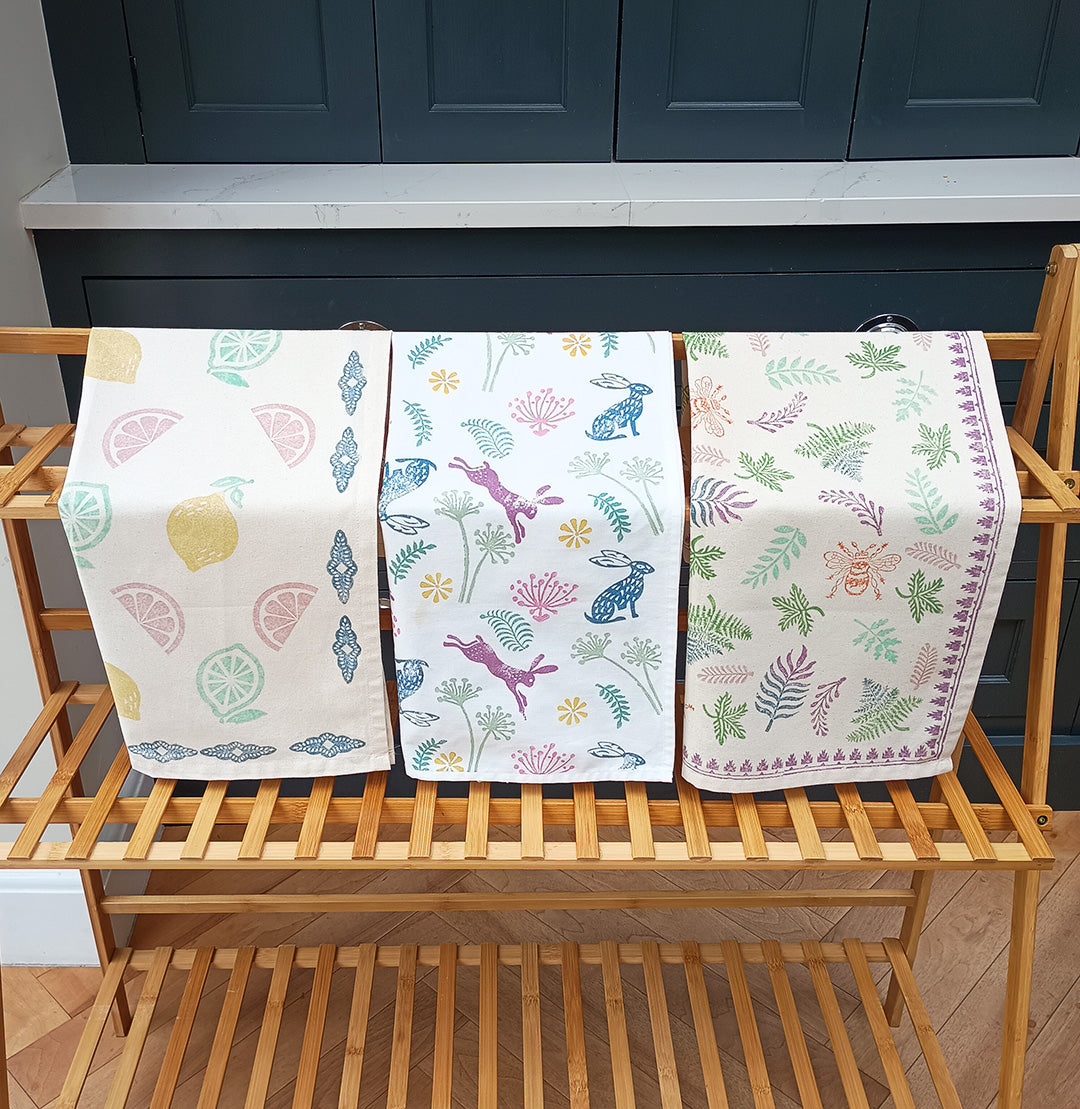 Blank organic cotton tea towel 50 x 70cm. Natural cream colour with hanging loop.