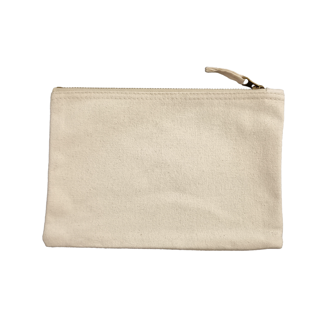 Blank cotton canvas zip bag or purse, which is 16 x 22.5cm. The actual print area is 13 x 20cm when accounting for seams. The colour is a natural cream.
